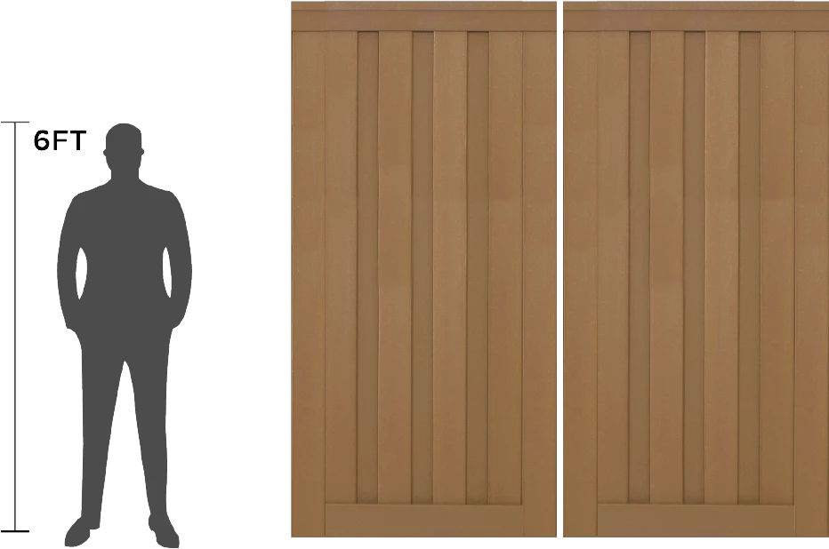 A Trex Seclusions Double Gate Panel Kit 8-ft. Tall has a standard opening width of 91 1/2-in. (measured between the gate posts). The Trex Seclusions composite gate panel is available in three rich, natural wood-like colors. Trex’s unique interlocking picket design offers a fully-private gate which means having the same look on both sides. No painting or staining is required and the gate material resists insect damage and rotting/splintering. Make this your next gate.