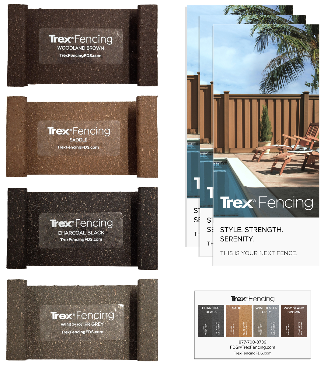 Trex Fencing Color Samples are made of Trex Fencing composite material so you can not only get a sense of how the colors will look when newly installed but what the material will look and feel like. Trex Fencing is available in four rich, natural colors that can complement any landscape or building. Learn more about the benefits and attributes of the Trex Fencing systems.